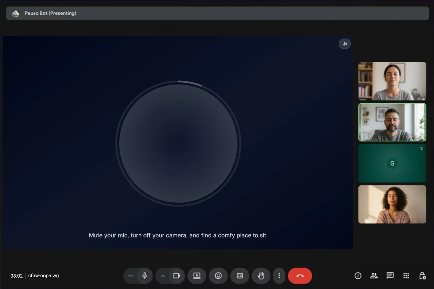 Pauso will join the call and guide everyone through a brief breathing or mindfulness exercise